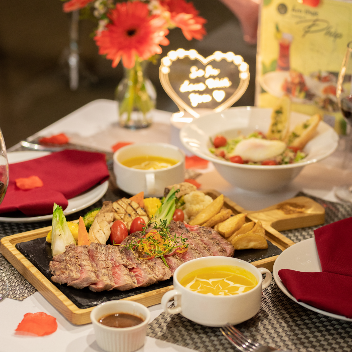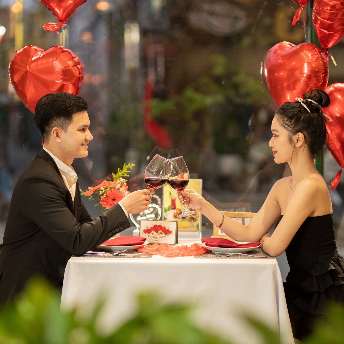 Một chiếc bàn nhỏ được thắp sáng bởi nến lung linh, vài cánh hồng đỏ thắm, ly rượu sóng sánh và những món ăn tinh tế mang hương vị Pháp – tất cả như thay lời muốn nói, để từng khoảnh khắc bên nhau thêm ngọt ngào và lãng mạn.